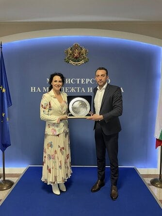 Министър Иван Пешев връчи почетен плакет на Мария Петрова по повод нейния 50-годишен юбилей като признание за изключителния ѝ принос към българската художествена гимнастика.