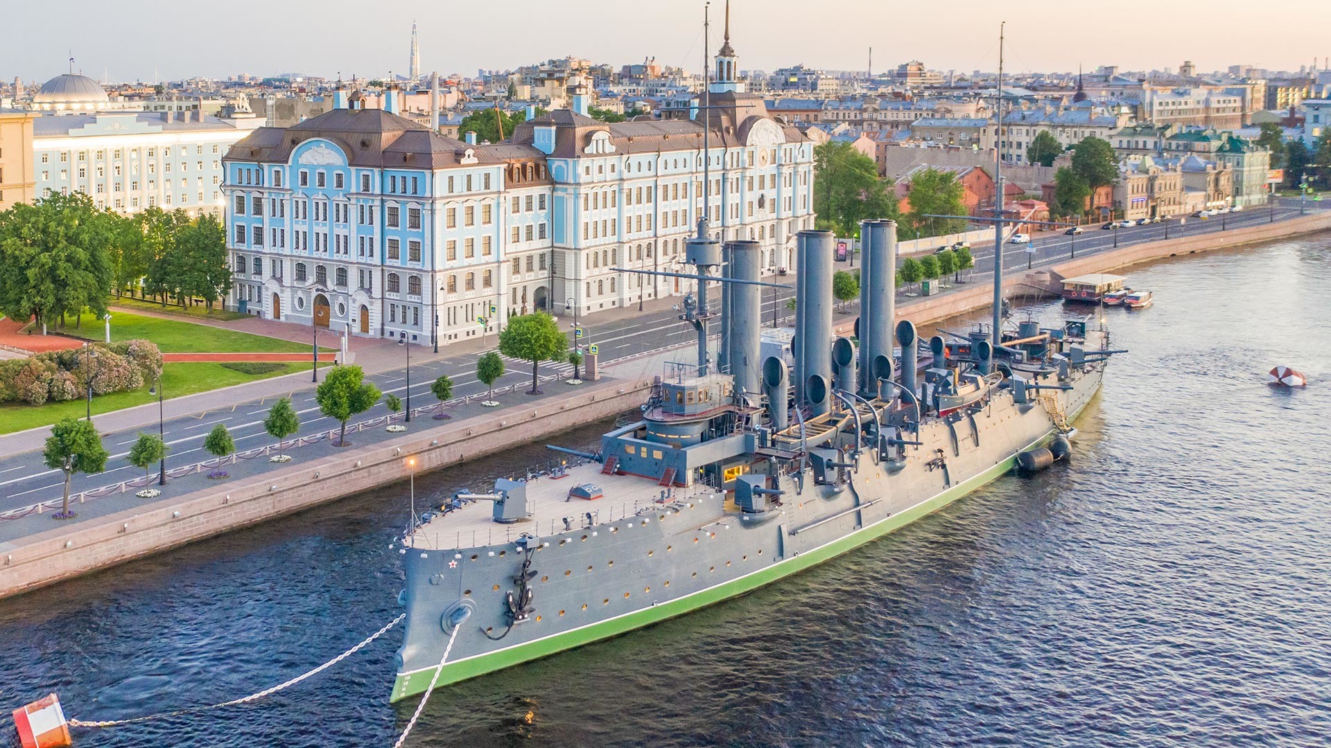 „Аврора“ е може би най-известният кораб в руската история. Той участва в Първата световна война, но най-историческата му роля е по времена Болшевишката революция, когато неговият залп отбелязва началото на щурма на Зимния дворец.