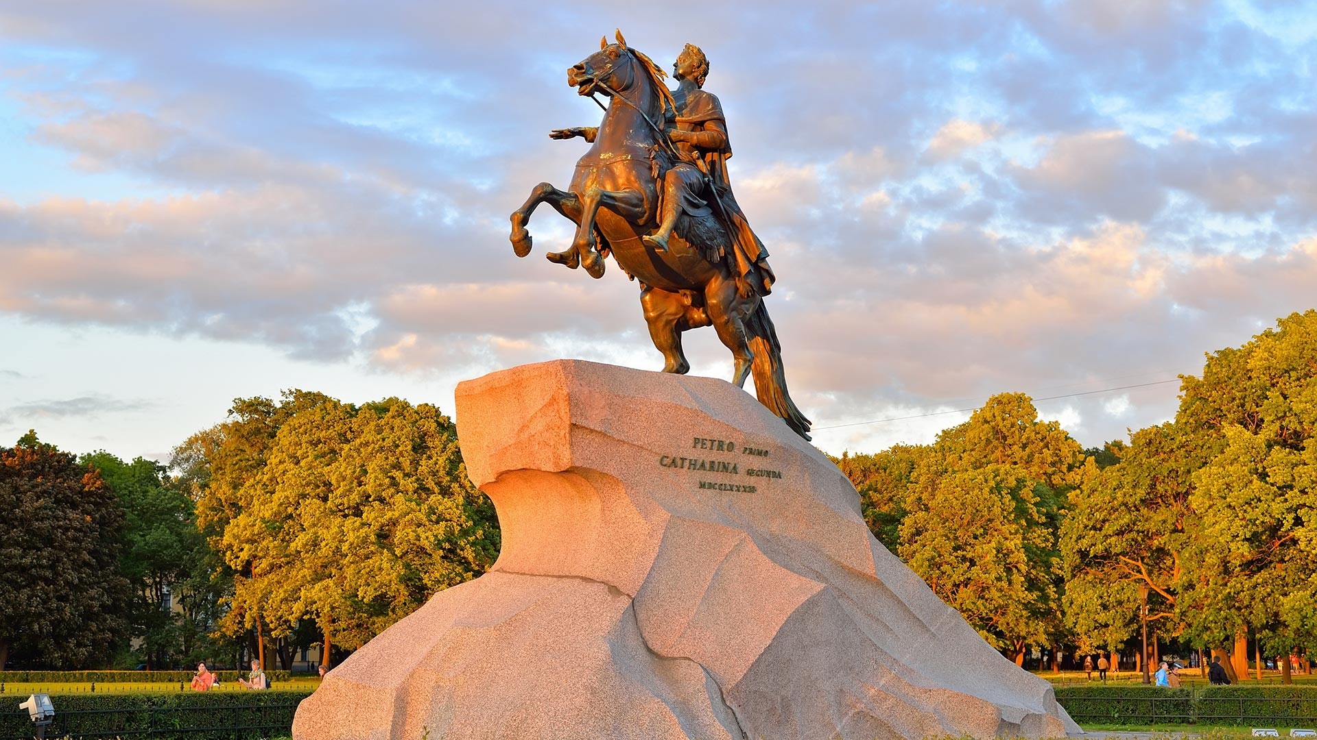 Статуята на Петър Велики на кон е издигната през 1782 г. върху огромен праисторически камък. Монументът е разположен на Сенатския площад и със сигурност е един от основните символи на града. Статуята става известна като „Бронзовия конник“ заради едноименното стихотворение на Александър Пушкин от 1833 година.