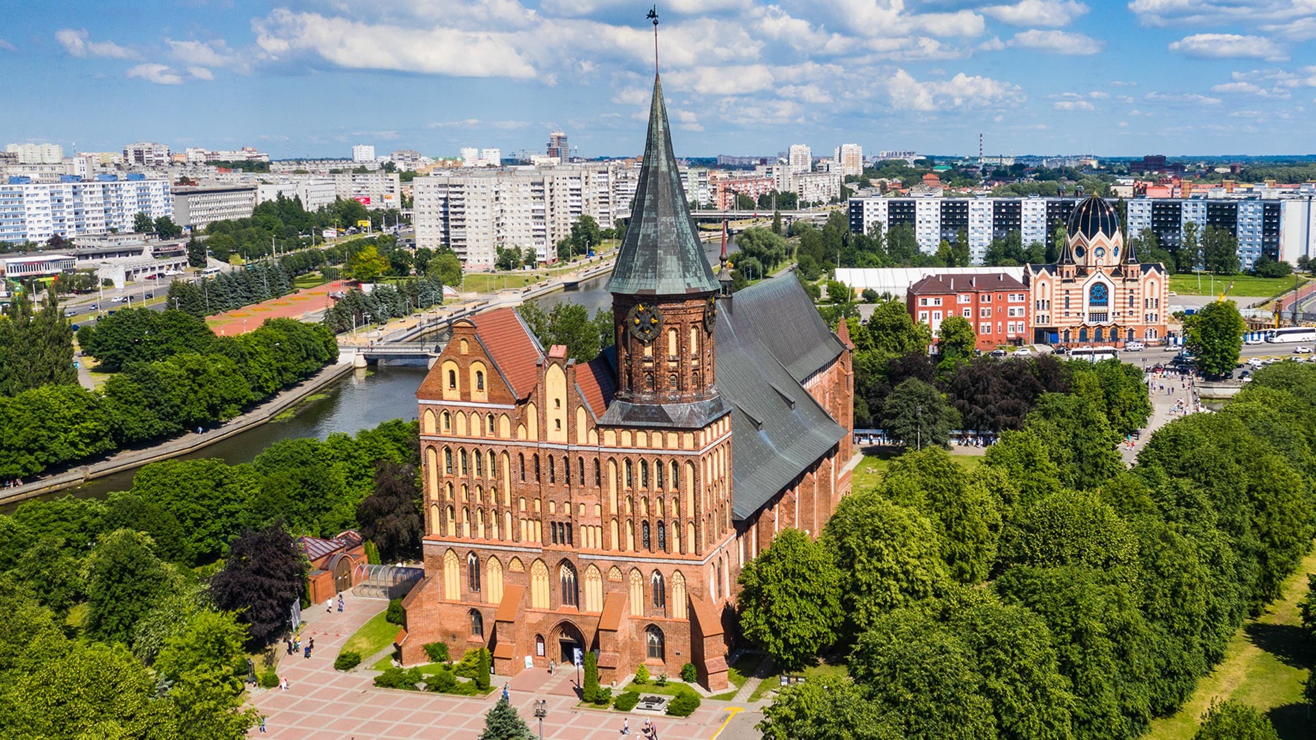 Калининград, най-западната част на Русия, в миналото е германски град на име Кьонигсберг, но след Втората световна война той става част от Русия. Така че в града има много реликви от немското му минало. Една от най-известните е Кьонигсбергската катедрала, разположена на живописния остров, известен в миналото като Кнайпхоф. Днес островът е познат като Кант в чест на философа Имануел Кант, който е погребан на него.