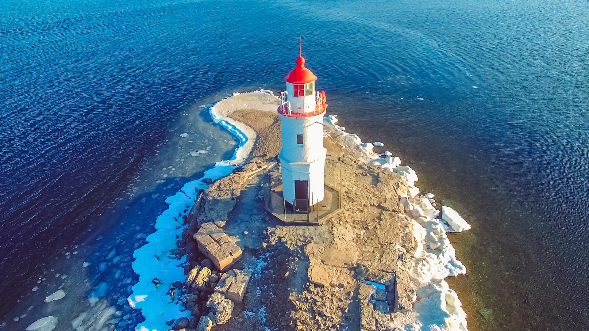 Това е едно от любимите места за снимки в Instagram в руския Далечен изток. Този живописен фар е отделен от сушата с малка пътечка, която понякога е заливана от водата. Между другото, това е един от най-старите фарове във Владивосток – построен е през 1876 г. и все още функционира.