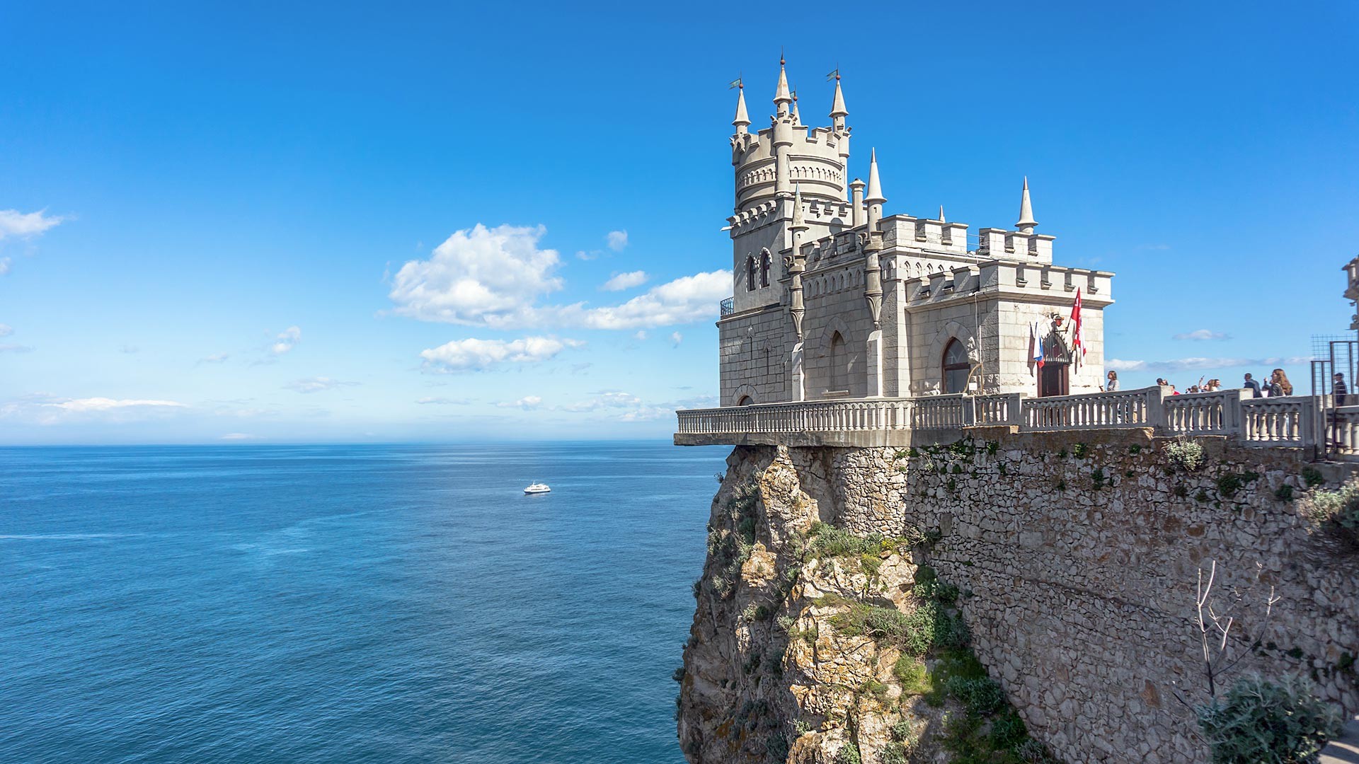 Този малък дворец в Крим е истинска легенда! Почти надвиснал от скала край Ялта, той се вижда идеално от водата и от сушата и е най-популярната гледка в Южен Крим. Преди Революцията той е собственост на руски милионер, но след това е изоставен в продължение на дълги години.