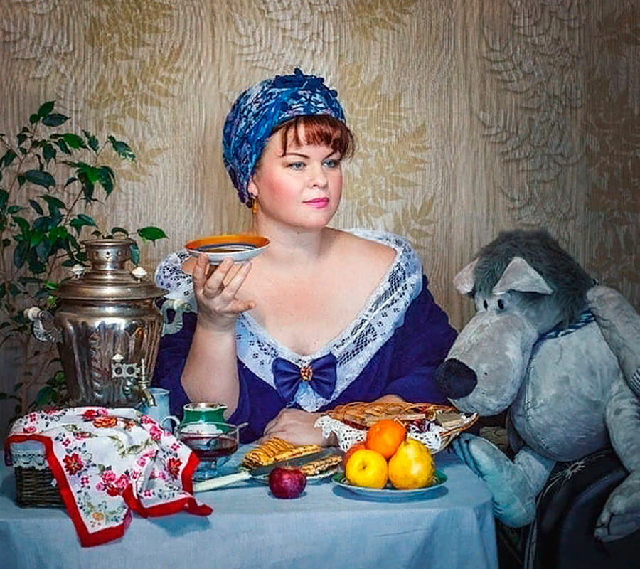 Спомняш ли си картината на Борис Кустодиев „Жена на търговец пие чай“?