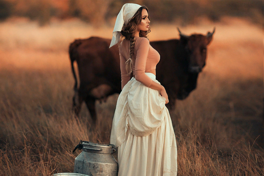 Кърпата, завързана като на момичето от шоколадовата обвивка на „Альонка“, обикновено се носи от млади момичета. Най-добре е да връзваш така кърпа от тънки тъкани през пролетта или есента – през зимата ще е хладно, но главата ще бъде спасена от вятъра! Историците смятат, че този метод е дошъл от Германия, но той е толкова „русифициран“, че сега се приема за стандартен руски. По съветско време кърпата, вързана по този начин, всъщност е била част от униформите на работниците във фабрики, колхози и совхози. От съображения за безопасност косата е трябвало да бъде прибрана, а освен това такъв възел предпазва врата от вятъра. Между другото всякакви прически с плитки са идеални за тази визия.