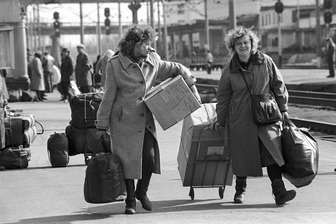 След разпадането на СССР мнозина действително остават без работа: държавните предприятията просто нямат с какво да плащат заплатите или плащат със своята собствена продукция. Като се има предвид огромното количество градообразуващи заводи и фабрики в страната, мащабът на бедствието е сложно да бъде преувеличен. Вчерашните учители, доктори и инженери са принудени да търсят нови способи за печелене на пари. Един от тези начини е търговията на пазара за чуждестранни стоки.