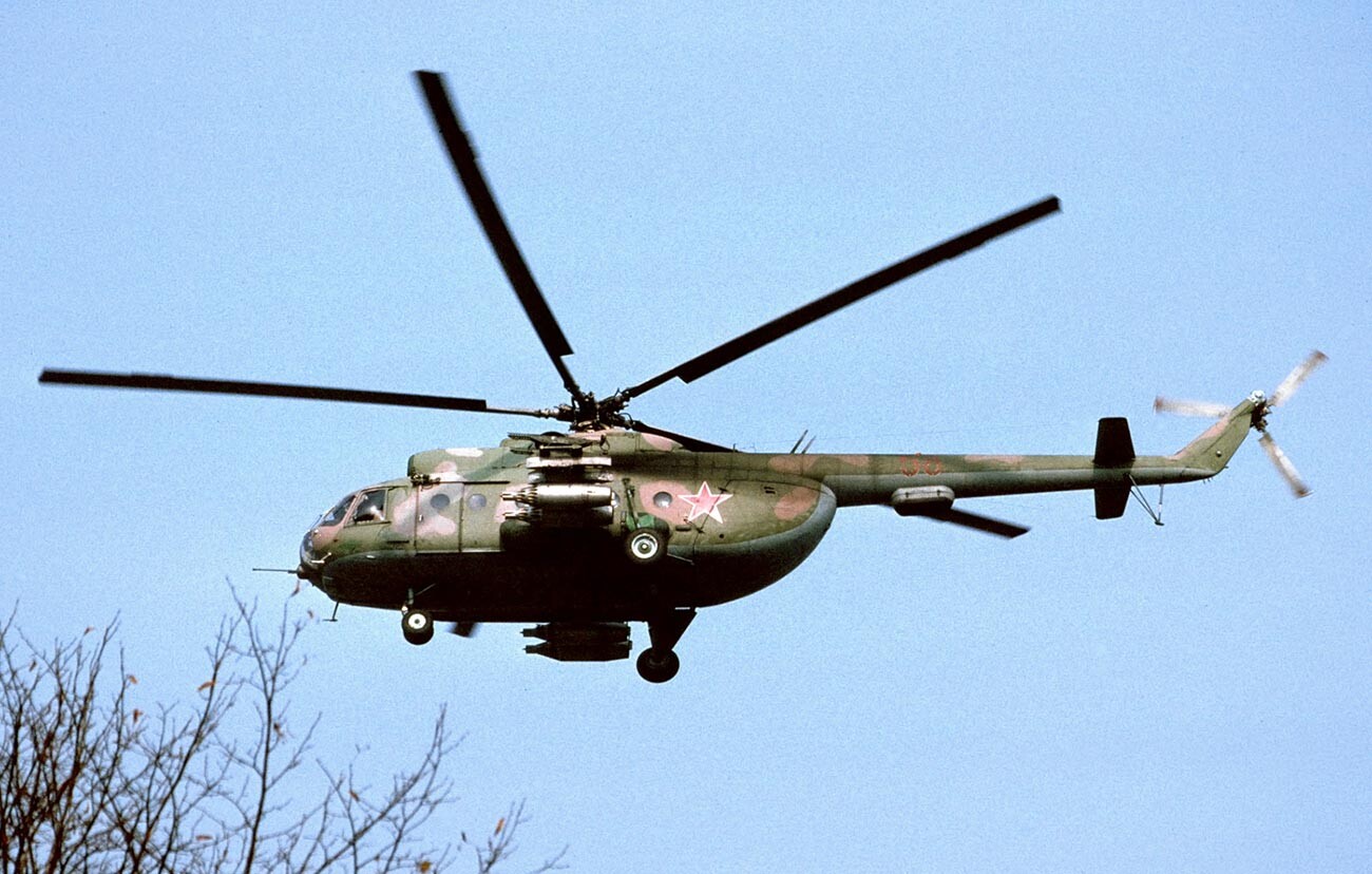В условията на планински терен, където няма пътища, вертолетите стават истинско избавление за съветските войски. Ми-8 се използват най-вече за транспортирането на войници и товари, а също и за десанти, но много участват и в бойни действия. За целта в отвора на входната врата нерядко монтират 30-милиметров автоматичен станочен гранатомет АГС-17 „Пламя“.