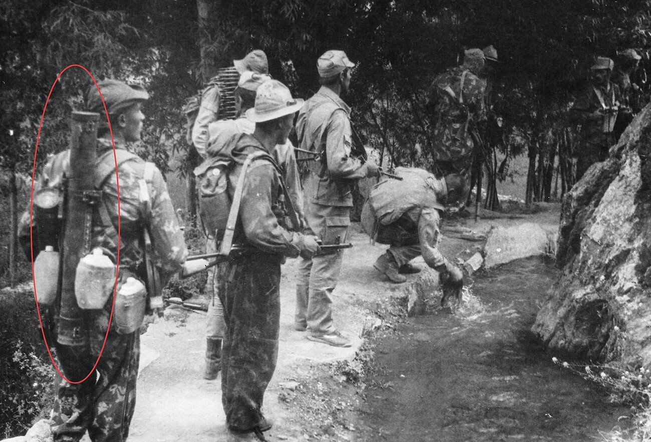 Ръчната огнехвъргачка „Шмел“, наречена от муджахидините „Дяволската тръба“, по своята мощ съответства на 152-мм гаубица, но тежи само 11 км и лесно се побира на гърба на пехотинеца. Гранатата, летяща на разстояние до 1700 метра (прицелно – до 800 м), унищожава всичко живо в радиус от 80 квадратни метра на закрити пространства и в радиус от 5 метра на открито пространство. „Шмел“ става ефективно средство за борба с врага, който се крие в пролуките в планините.