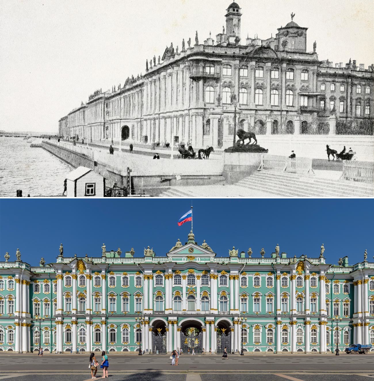 След Февруарската революция от 1917 г. в Зимния дворец се помещава временното правителство. Но не остава там задълго: до ноември, според официалната версия на болшевиките, дворецът е щурмуван от войници и моряци от революцията. През 1920 г. тук врати отваря Музеят на революцията и, година по-късно, огромните зали на Зимния дворец са пълни с картини и изложби на Ермитажа – по-рано изложбите на Ермитажа се провеждат в допълнителните сгради на двореца. Днес това е един от най-посещаваните музеи в света.
