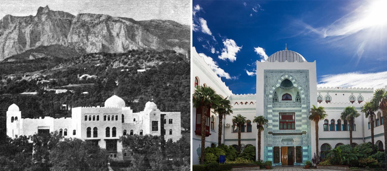 Когато погледнете този дворец, почти бихте могли да се почувствате като в страна в Северна Африка. Той е резиденция на внука на Николай I – великият княз Петър Николаевич. Построен е в края на XIX в. от архитект Николай Краснов, който проектира и Ливадийския дворец, по планове, нарисувани от великия княз, който е пътувал много из Близкия изток. Дворецът в мавритански стил е украсен със сребърни куполи и цитати от Корана. След революцията тук идват да живеят и други внуци на Николай I – великите князе Александър Михайлович и Николай Николаевич, както и императрицата-вдовица Мария Фьодоровна (майка на Николай II). През 1919 г. те напускат Крим и отпътуват зад граница на английски крайцер, бягайки от сполетелите ги беди.
