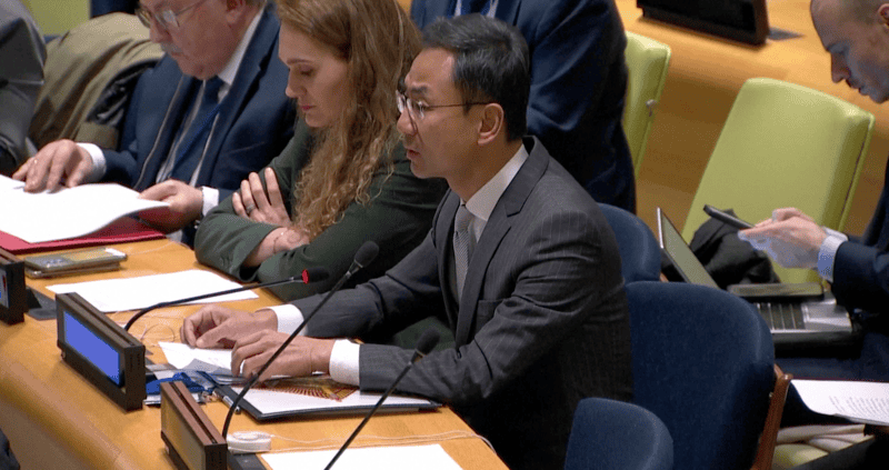 Гън Шуан, заместник-постоянен представител на Китай в Организацията на обединените нации, отправи апела на шестата сесия на Конференцията за създаване на зона, свободна от ядрени оръжия и други оръжия за масово унищожение в Близкия изток.