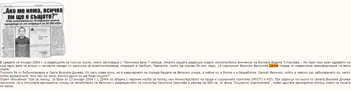 За него пише вестник „Дума“ още през 2004 година и тогава от Министерство на социалната политика отпускат 500 лева еднократна помощ.