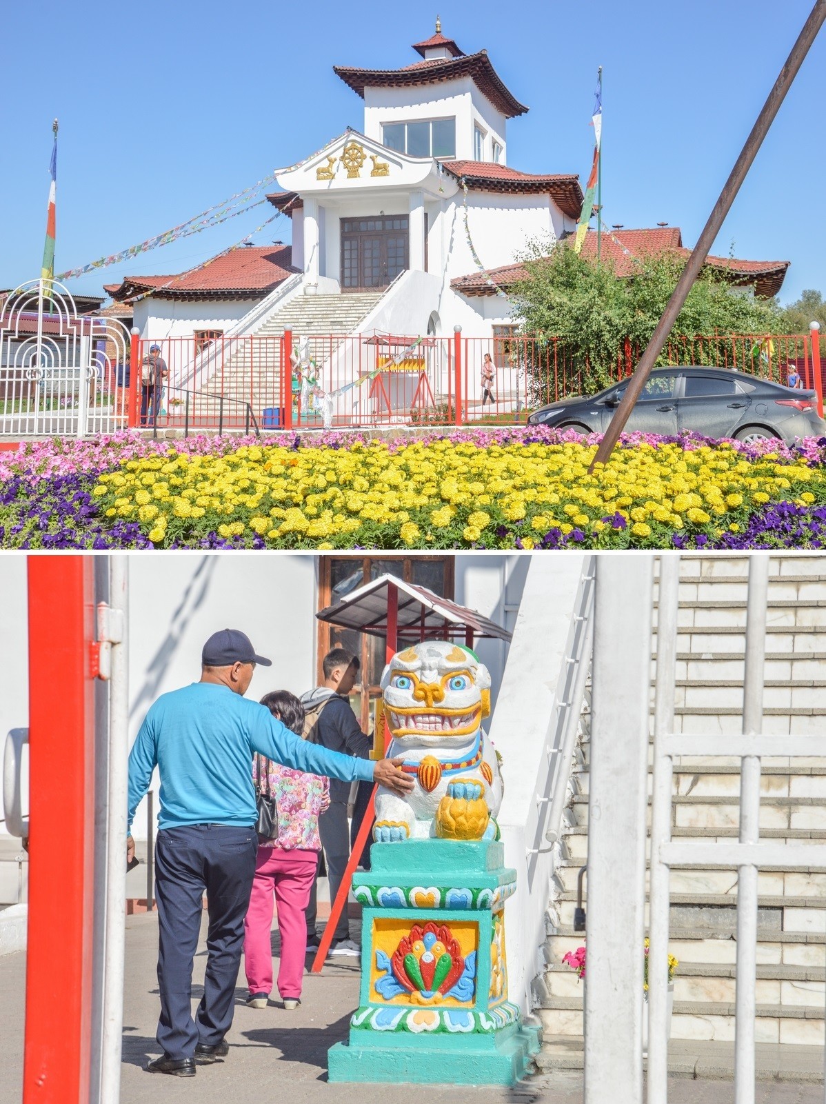Жаден, но изпълнен с хармония и спокойствие, най-накрая се завръщам в града, където отпътуването ми наближава. За последен път прекосявам централния площад. Статуя на Ленин, реликва от съветските години, стои отстрани, а в самия център е разположено величествено будистко молитвено колело и монументален театър, сякаш излезли направо от Тибет.