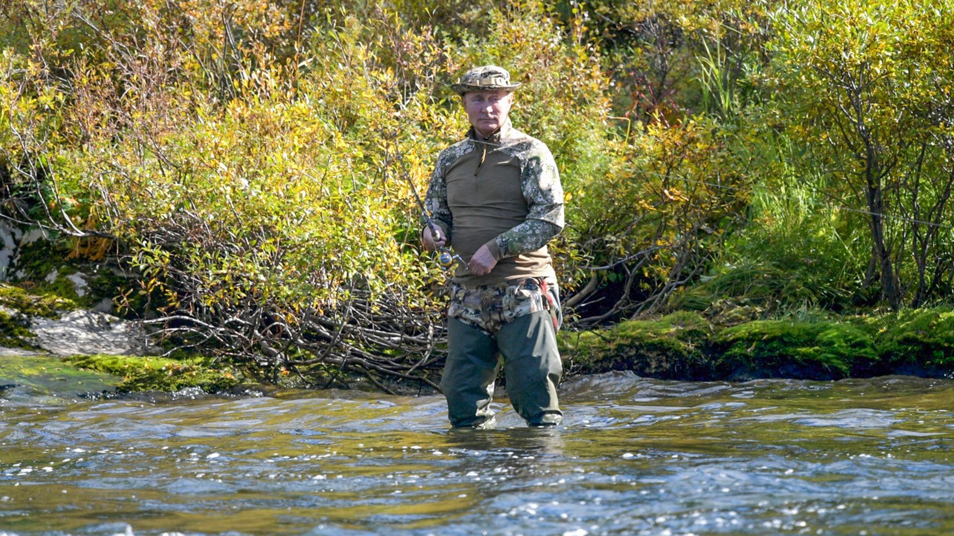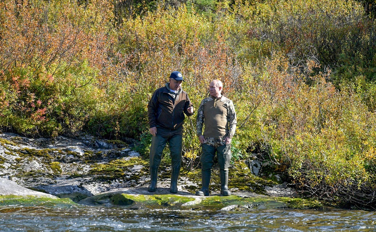 По време на ваканцията Владимир Путин и Сергей Шойгу ловят риба от лодка и от брега. „Хубава щука“, коментира министърът улова на Путин, когато той изважда рибата от водата. След това от нея те си сварили рибена чорба уха.