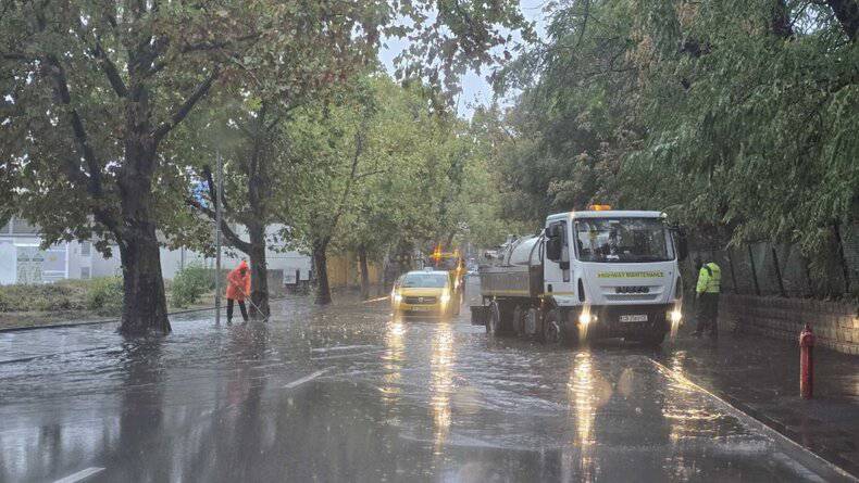 Екипи на фирмата за обществена хигиена отводняват улици в Русе, остава в сила оранжевият код за опасни валежи