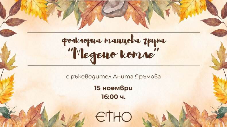В почивния ден, от 16:00 часа, не пропускайте концерта на Фолклорна танцова група „Медено котле“ с ръководител Анита Яръмова. Събитието ще се проведе при вход свободен.