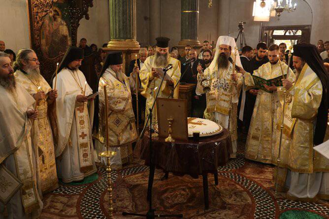 Негово Светейшество съслужи с Техни Високопреосвещенства Великотърновския митрополит Григорий и Неврокопския митрополит Серафим, архим. Епифаний – протосингел на Неврокопска св. митрополия, архим. Севастиан – игумен на манастира Седемте престола, архиерейски наместници, свещеници от епархията и дякон Димитър Златинов.